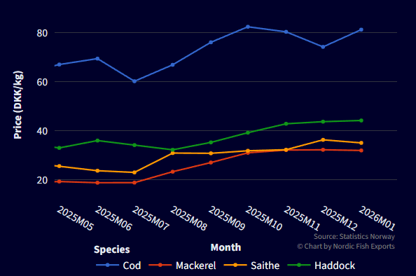 The image below shows Norwegian mackerel and groundfish prices in DKK