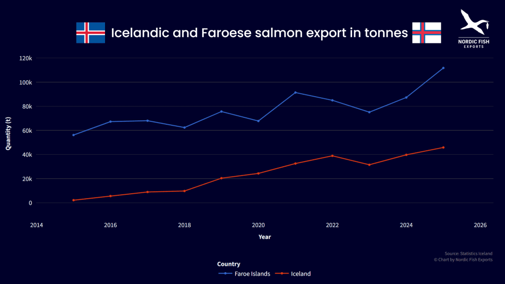 • Since 2015, salmon exports have risen from 2.000 to over 45.000 tonnes
